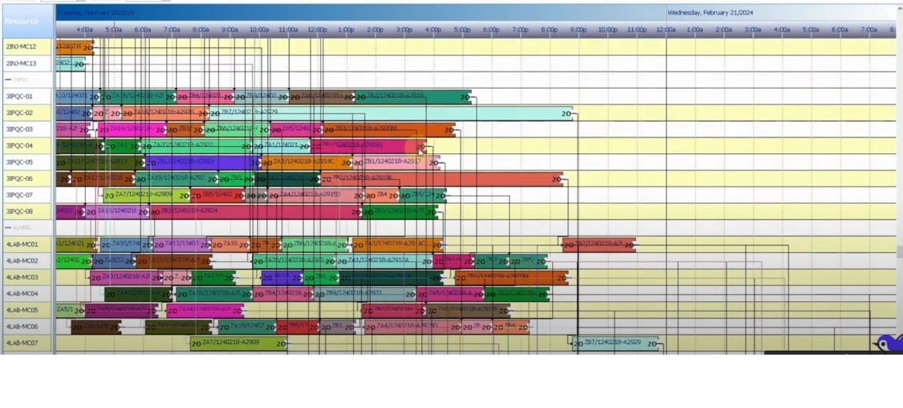 産スケジューリングは、NETSYS APS(Advanced Planning and Scheduling)ソフトウェアを使用しています。これは工業用工場の生産スケジュールを管理するためのソフトウェアです。