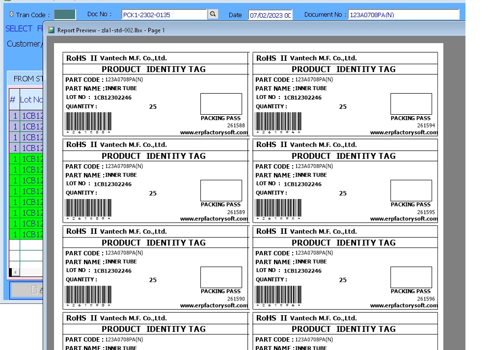 当进行包装系统(PACKING SYSTEM)时,会自动生成成品的条形码标签。